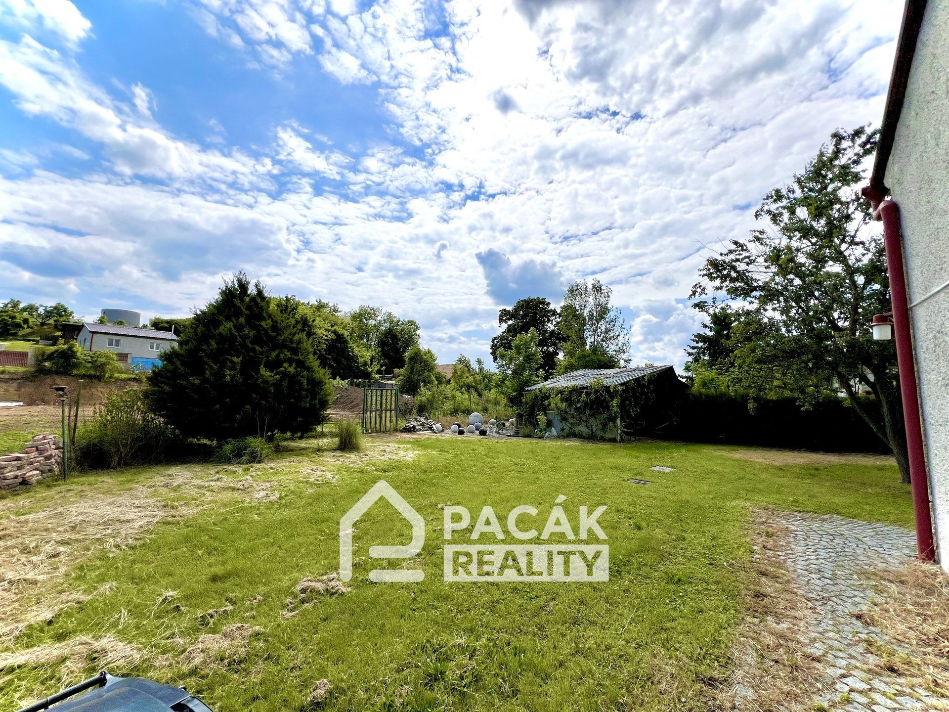 Přístup na pozemek zajišťuje dostatečně široký průjezd, který umožňuje průjezd menších i větších vozidel.